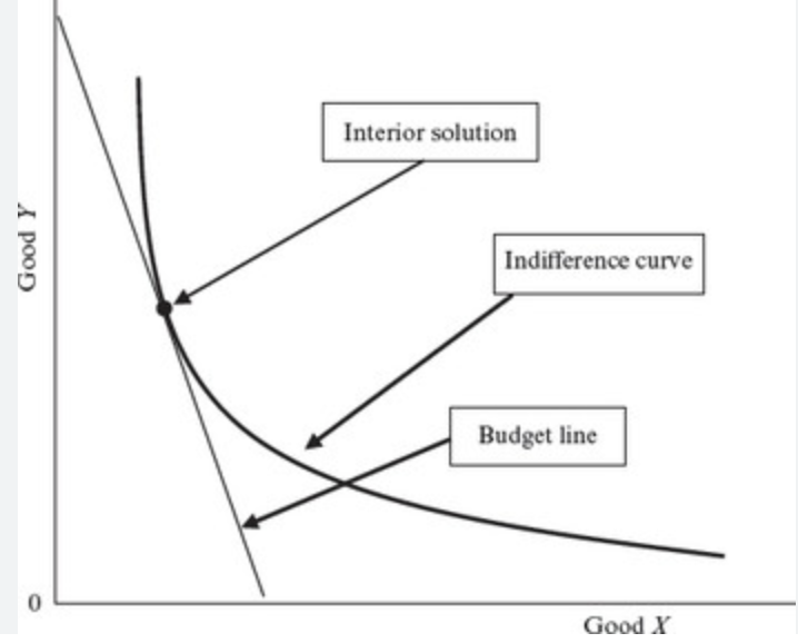 Interior solutions exhibit optimal quantities that are positive for both goods,