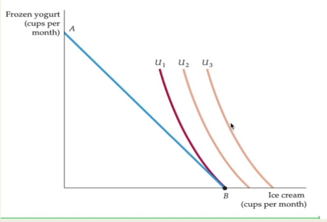 Highest IC the consumer can reach where the optimal quantity of one of the goods is zero. This will occur when the MRS is greater or less than the MRT.