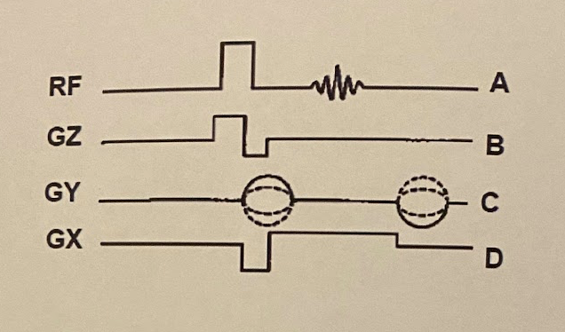 A T2 weighted spin echo sequence is characterised by parameters as listed below