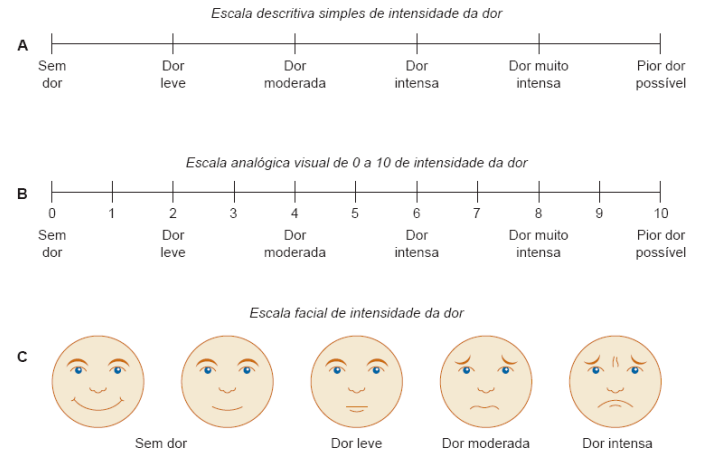Pede-se para o paciente apontar, ao invés de falar. Diferentes dores devem se estudar separadamente, a não ser que se trate de dor irradiada ou referida