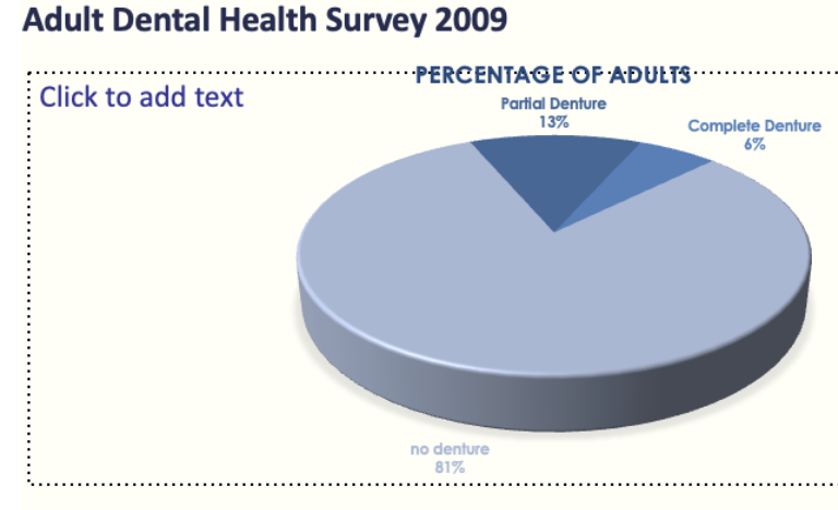 What percentage of adults where partial dentures, complete dentures or no dentures.
