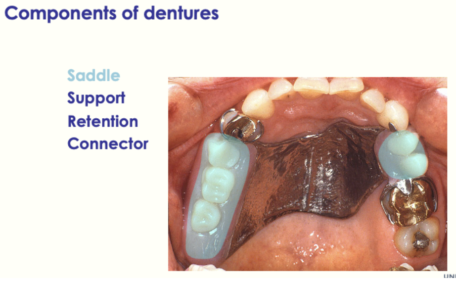 Bound saddle - area where teeth are missing that’s going to be replaced by a denture but at either end of those missing teeth there is a natural tooth