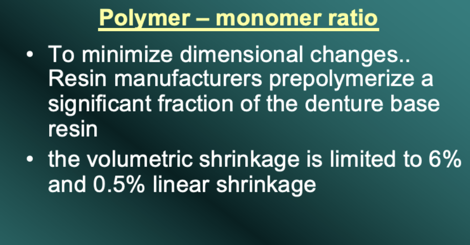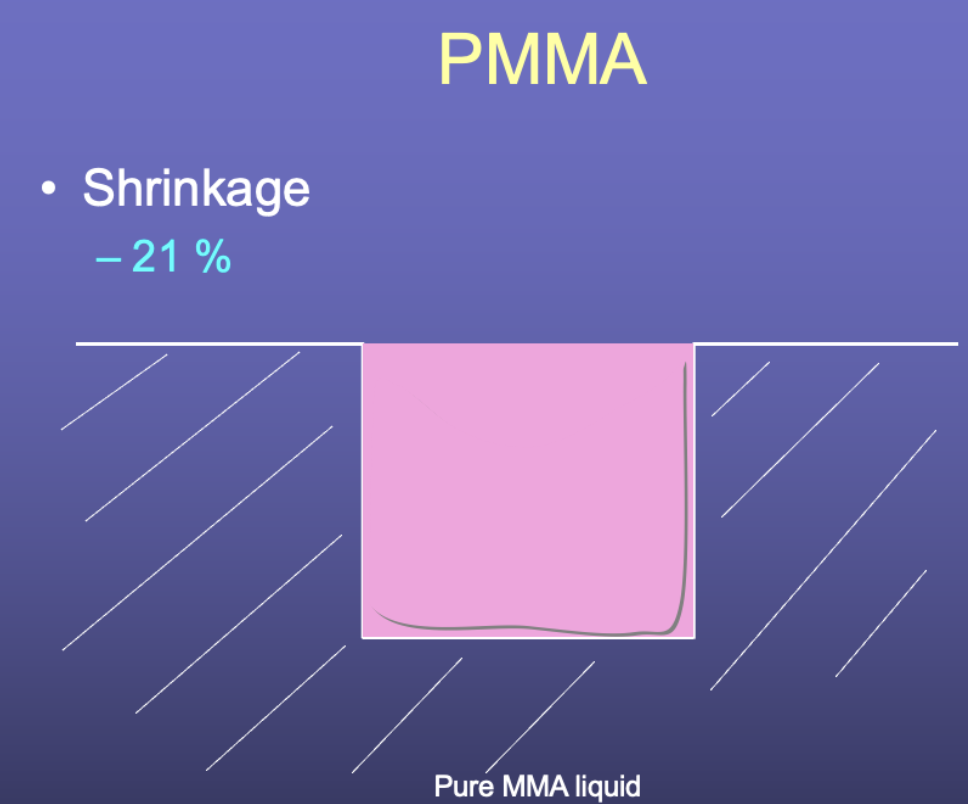 As the monomer molecules join together to form polymer chains, the space between them is reduced. This results in material shrinkage, which for pure MMA monomer is about 21% by volume