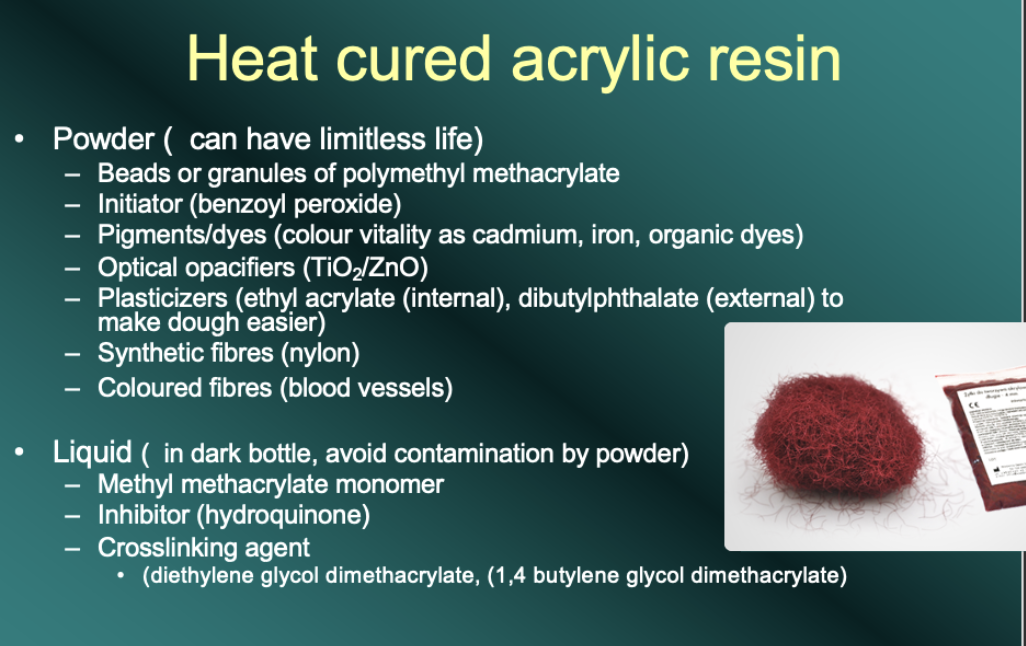 In a heat cured acrylic resin what components are needed