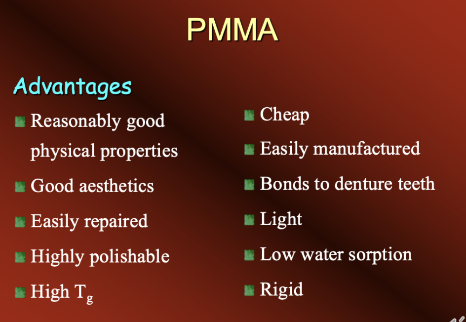 PMMA is a very good denture base material, so far nothing better has been developed. Here is a list of it’sadvantages.
