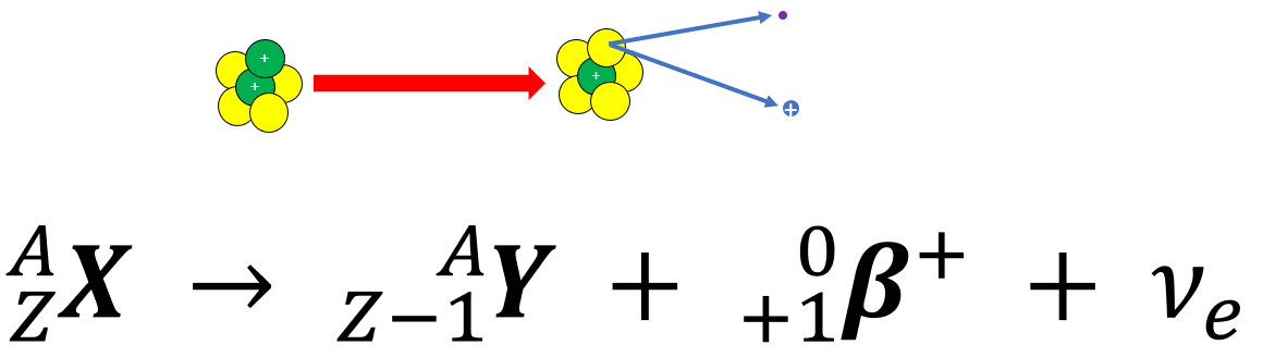 Ejecting a fast moving positron (β+) and an electron neutrino