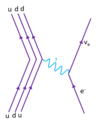 A proton turns into a neutron