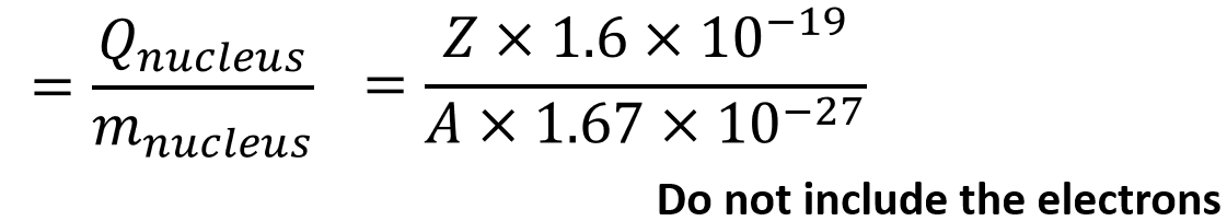 Divide the total charge of the protons by the total mass of nucleus