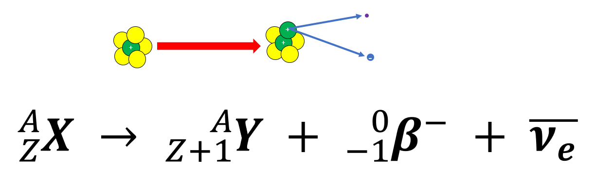 Ejecting a fast moving electron (β-) and an anti-electron neutrino