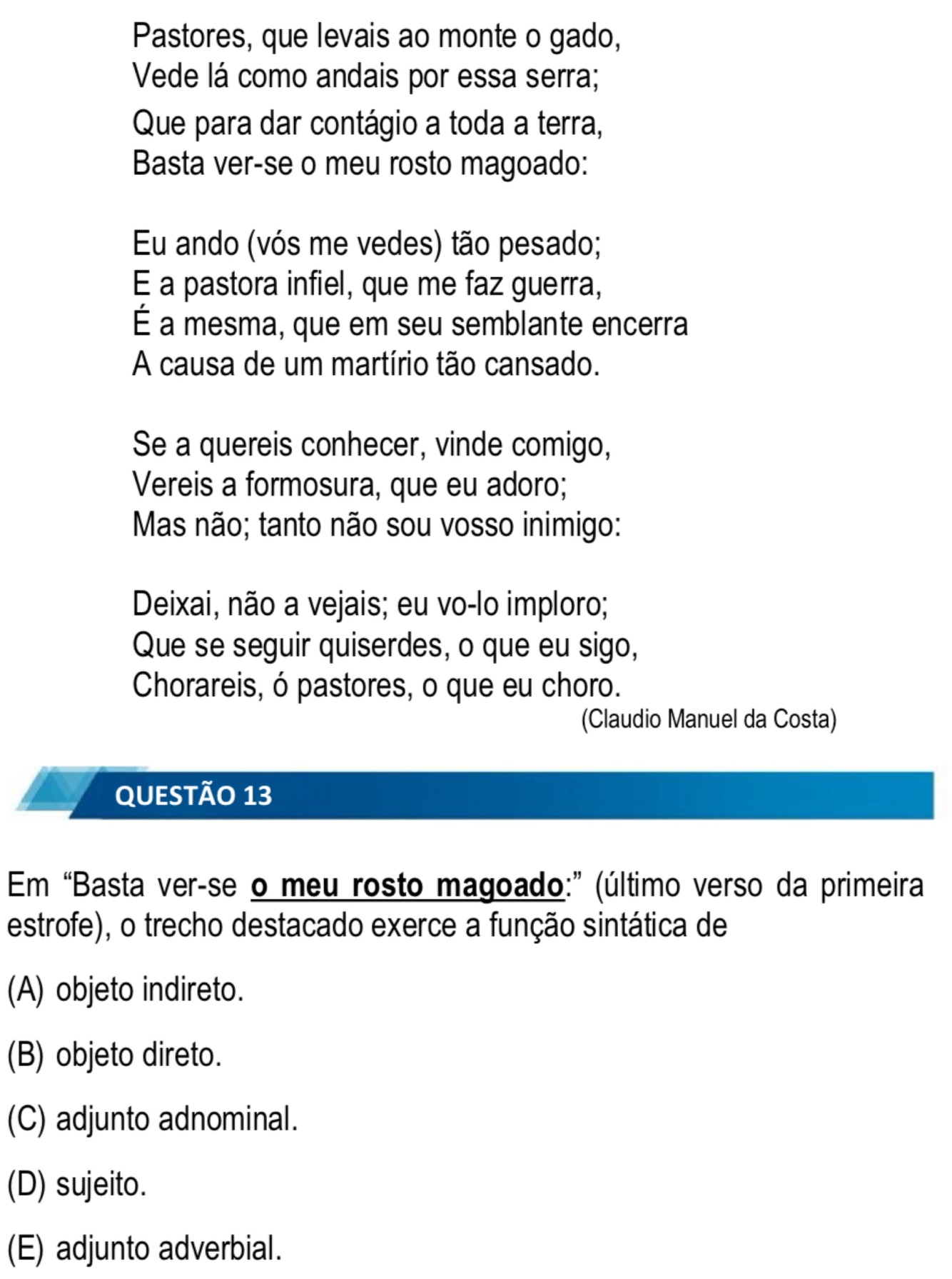 Obs: devemos notar que a partícula “se” está ligada a um verbo transitivo direto em uma frase sem sujeito agente, desta forma o “se” está sendo utilizado como partícula apassivadora em uma voz passiva sintética. Deste modo, o termo “o meu rosto magoado” obrigatoriamente é o sujeito da frase.
