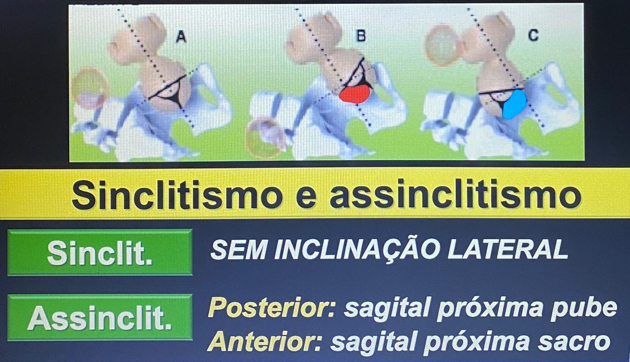 Sinclitismo: sem inclinação lateral da cabeça, sutura sagital simetrica/equidistante em relação ao pubis/sacro