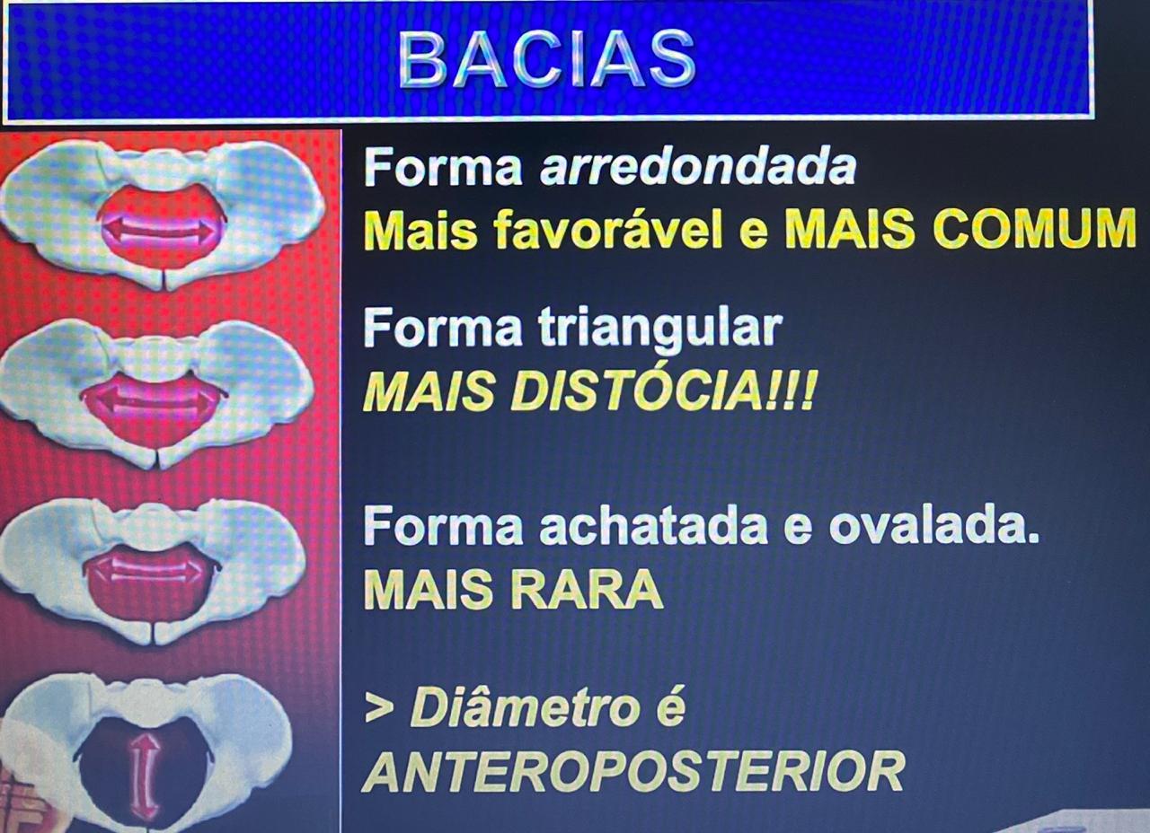 Conjugata obstétrica (~10,5 cm): borda interna, medial da sinfise pubica até o promontorio