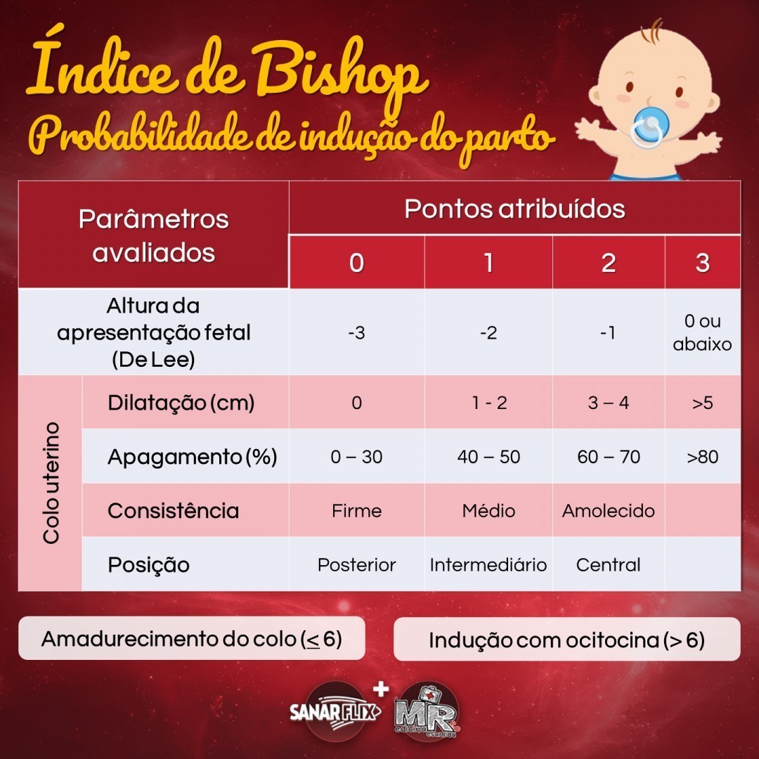 Avaliar Bishop: colo (dilatação, apagamento, posição, consistência) + altura (De Lee)