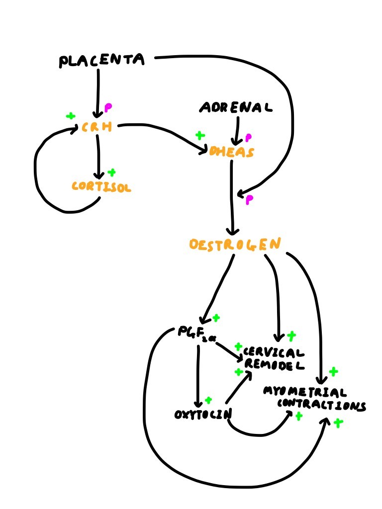 Response to stress due to placenta no longer adequate to supply fetus with adequate nutrition.