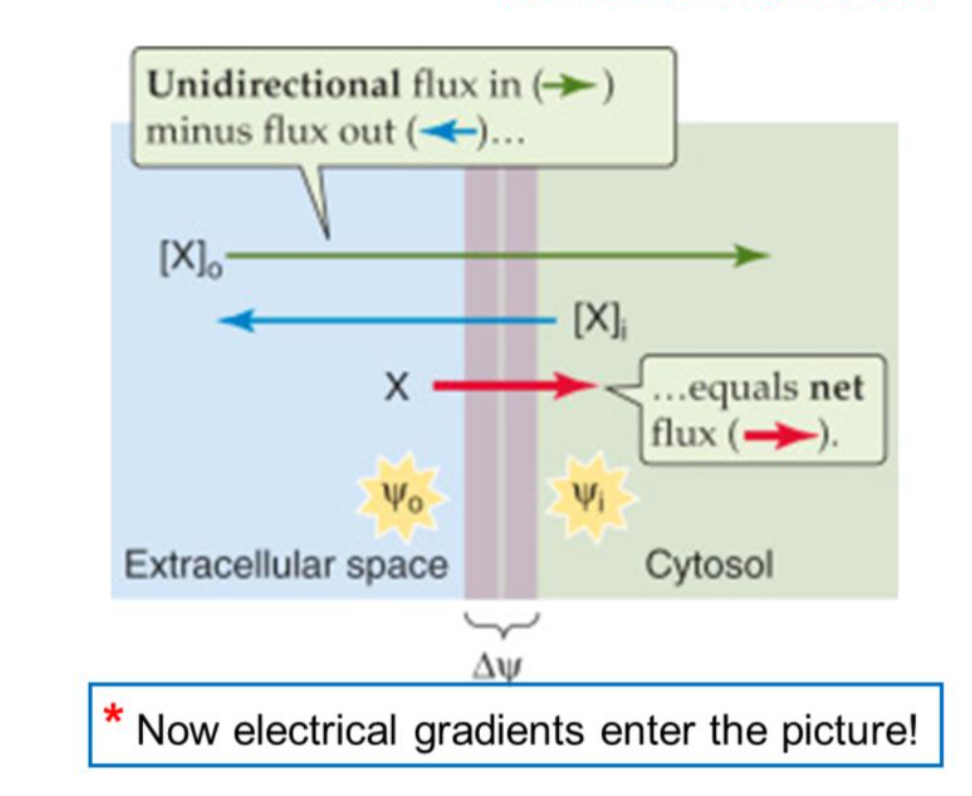 Net Flux of Charged solute across the cell membrane - the electrochemical gradient