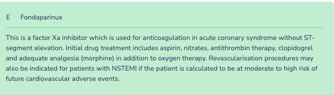 A male with known angina currently managed on glyceryl trinitrate (GTN) spray presents to the Emergency Department with crushing central chest pain. A 12-lead electrocardiogram reveals ST depression and flat T waves. He is managed as acute coronary syndrome without ST elevation.