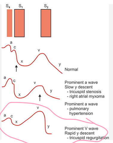 Which changes to JVP waveform indicate a patient might have mitral stenosis? [2]