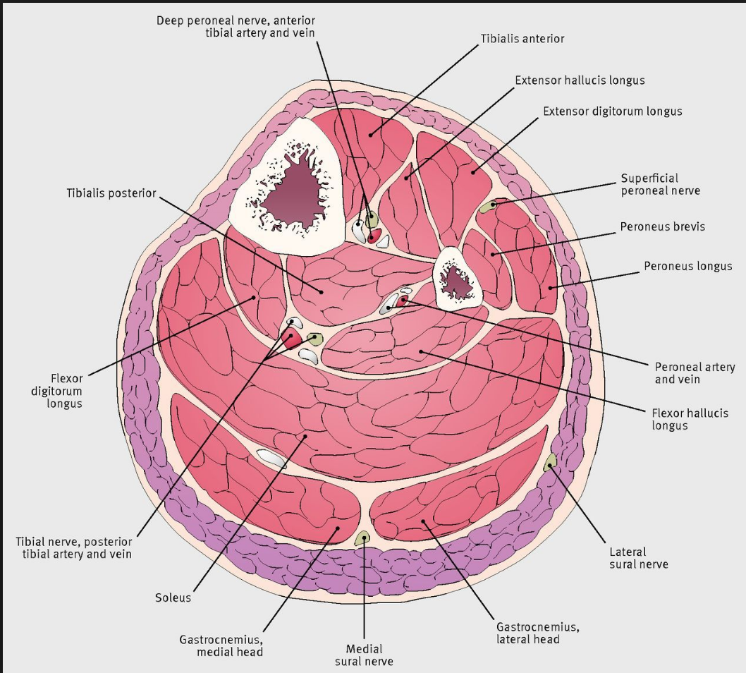 Identify: 1. Tib ant 2. Soleus 3. Superficial peroneal nerve 4. Tibial nerve