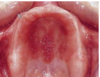 pt presents with pain in their face and is Middle-aged, female patient with constant burning sensation affecting the palate and tongue, with erythema of the mucosa.