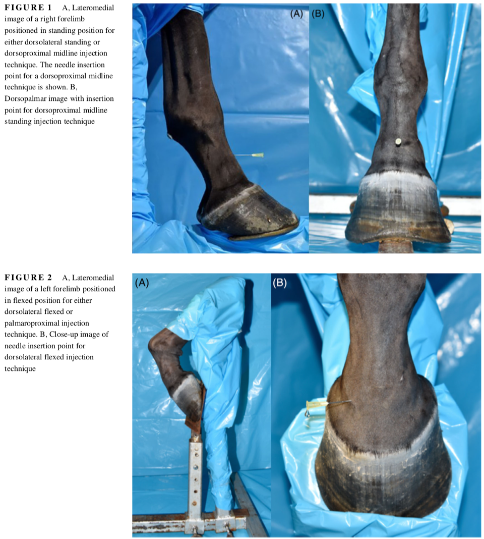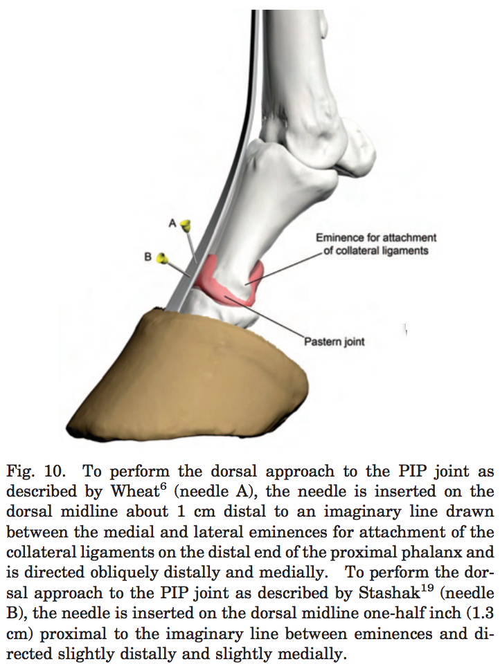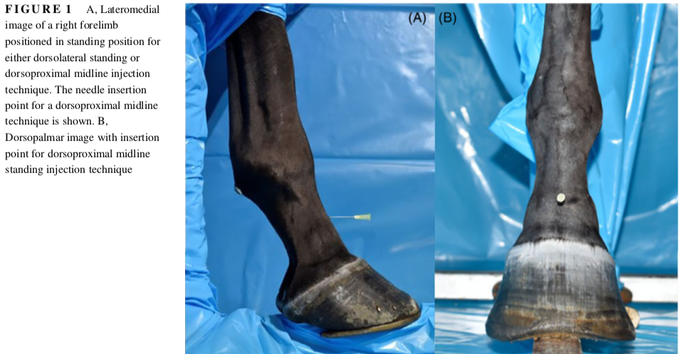 Landmarks and needle insertion site for dorsal/dorsolateral approaches to the pastern