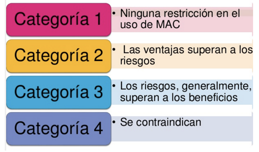 Ninguna restricción para el uso del método anticonceptivo.