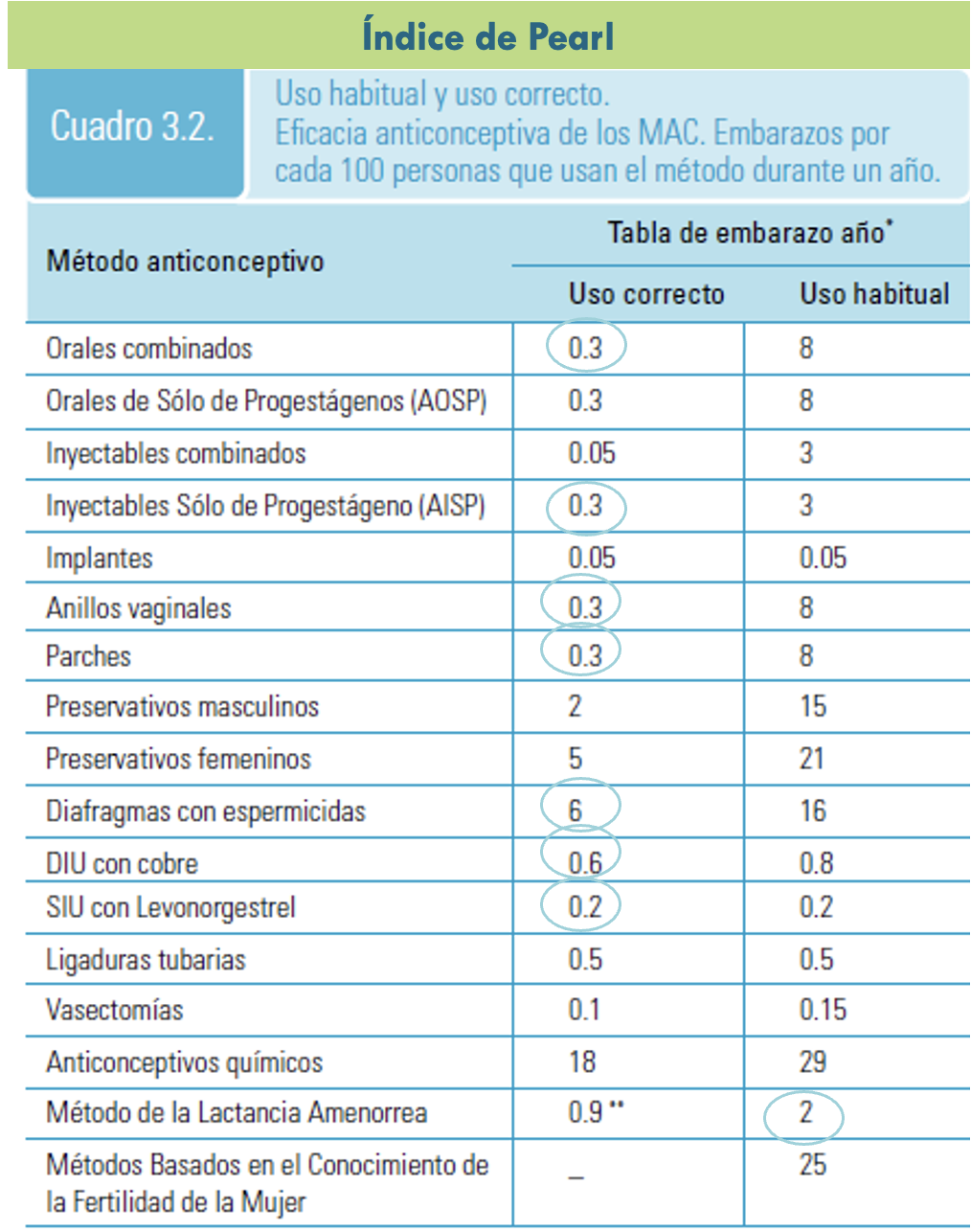 0,1 embarazos/100 mujeres-año-uso.