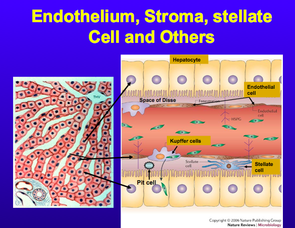 • Stellate cells, under normal conditions, are very quiet; they store some fat and minerals