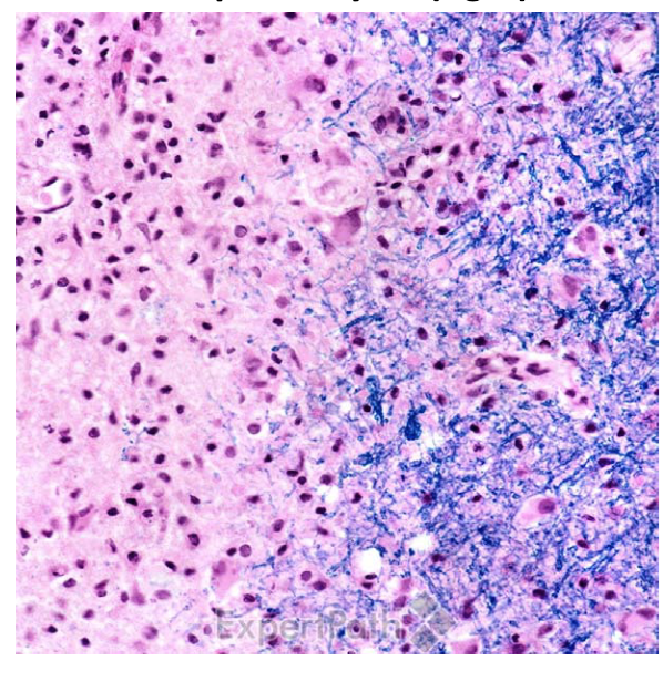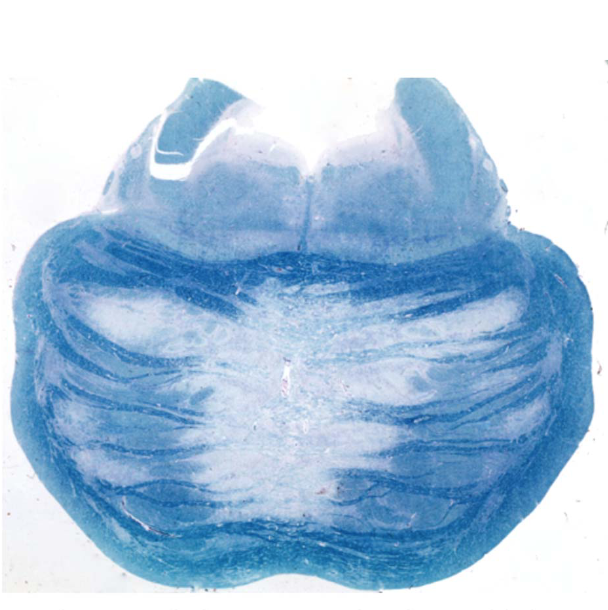 If the provided sample has been stained with Luxol-fast blue PAS, it is from what disease?