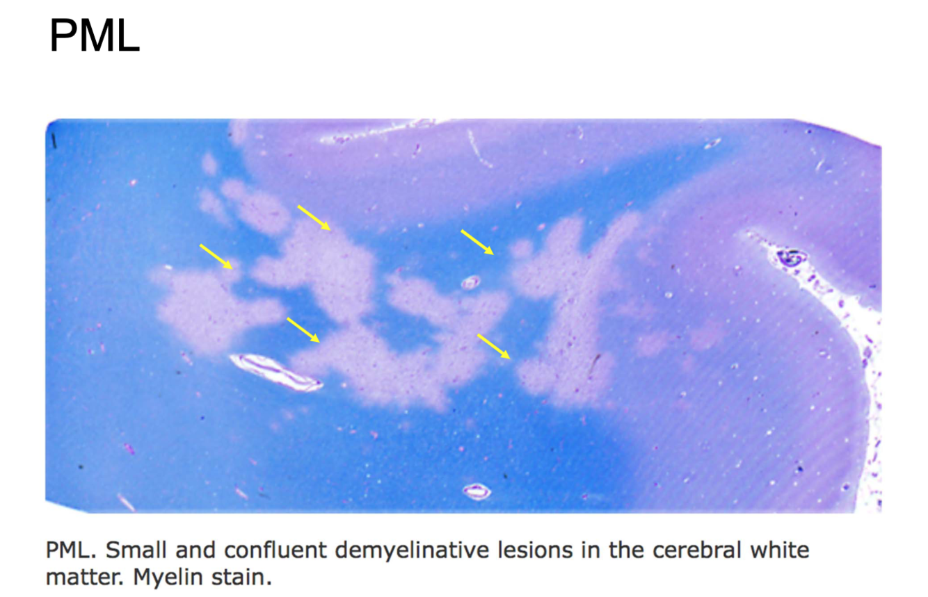 deadly demyelinating CNS disease due ot lytic infection of oligodendrocytes