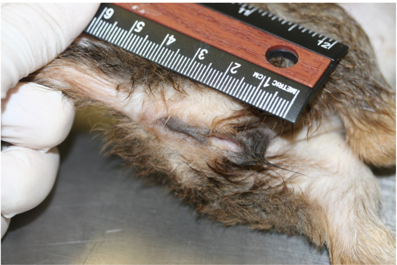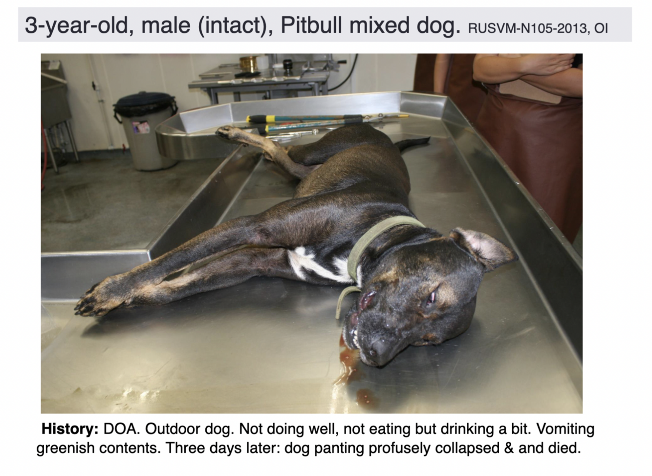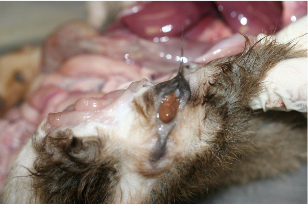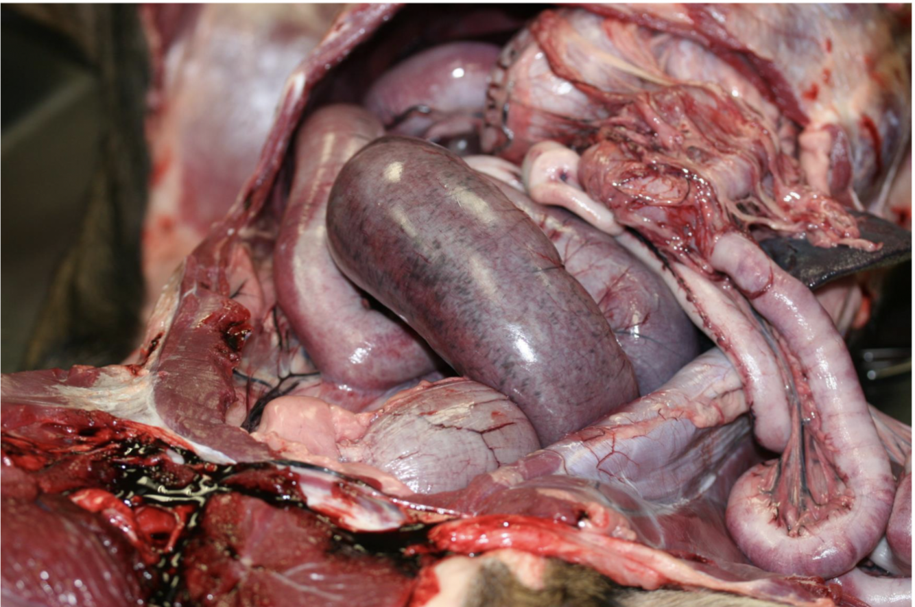 Edematous; fluid in peritoneal cavity; Subcutis looks gelatinous; could also be hypoproteinemia; subcu fluids were administered to this puppy, so that could be the reason for why it looks “wet”