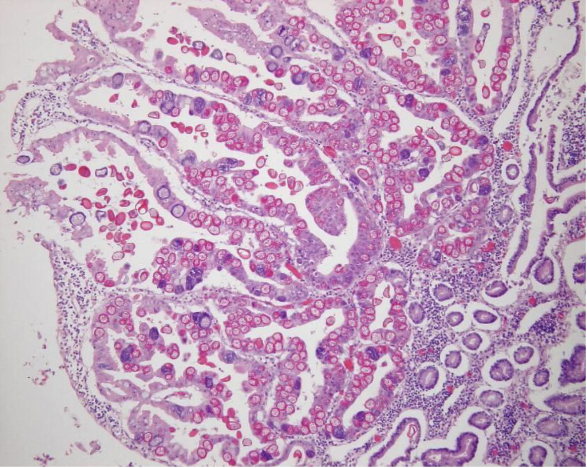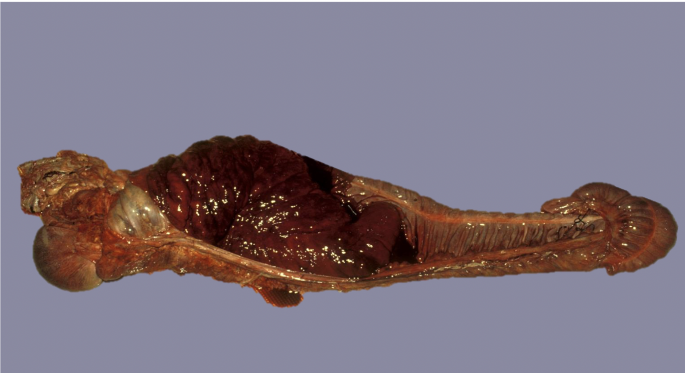 Jejunum from a young goat with a history of diarrhea, AVC case.