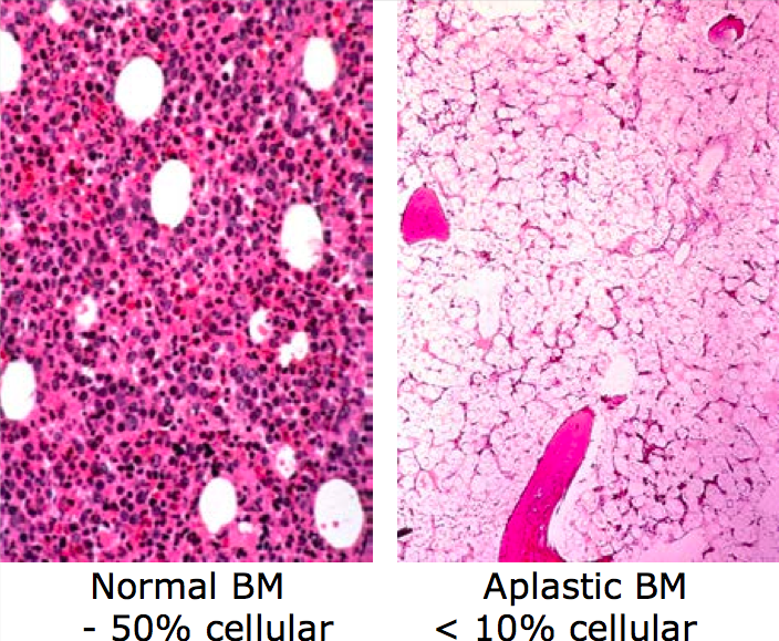 Bone marrow should be 50/50 hematopoietic cells and fat.