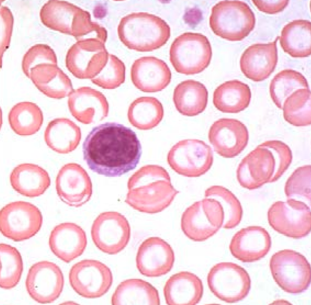 Marrow stress from hemolytic syndromes or metastatic cancers. This is a nucleated red cell that is released by the marrow from stress.