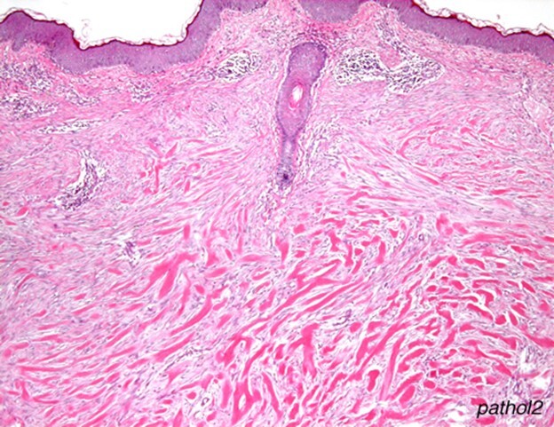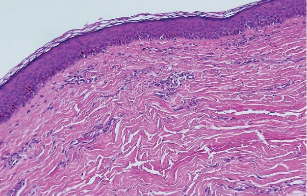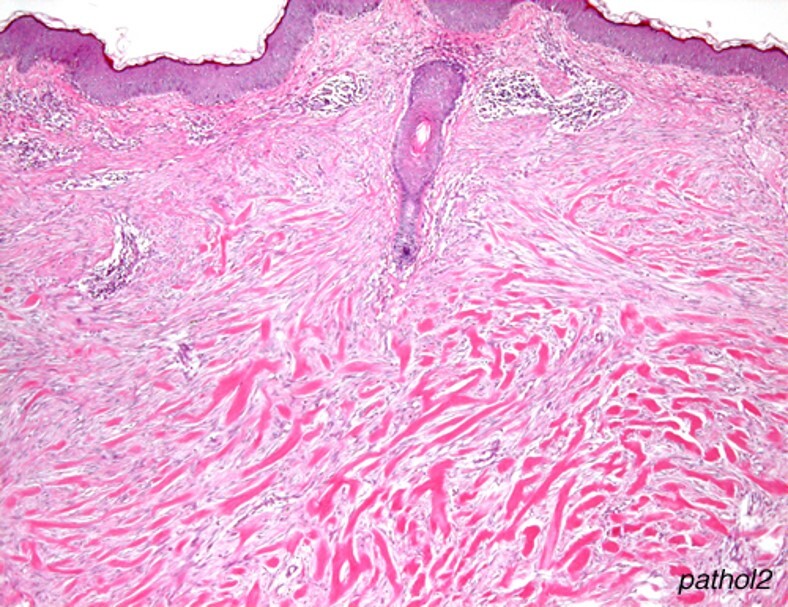 Hypertrophic scar type 3 collagen deposition in dermis parallel to epidermis