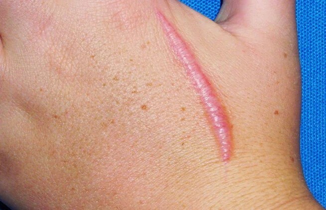 Diagnosis/Abnormality: Hypertrophic Scar (Parallel Type III collagen fibers); the healing from the scar regresses to within the boundaries, laceration on hand/arm.