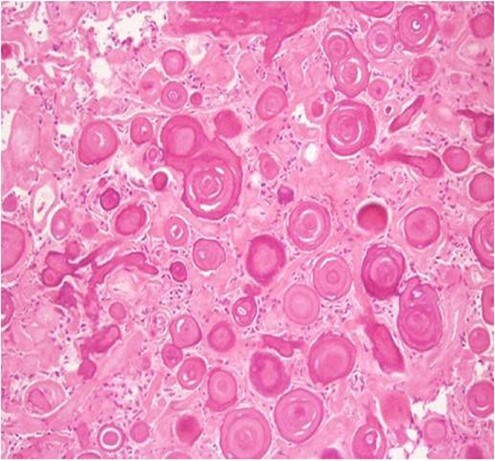 Psammoma bodies causes necrosis and deposits calcium inside the brain