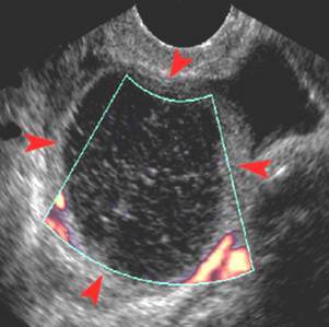 hypoechoic mass with echogenic center “TARGER LESION”
