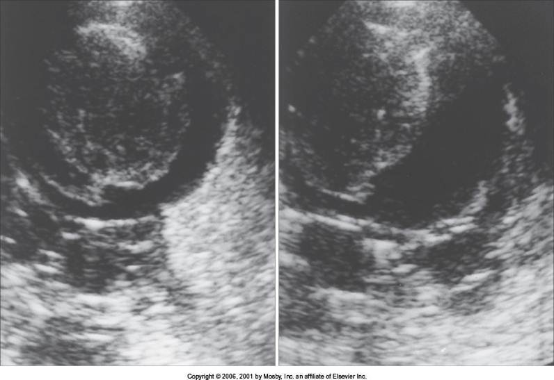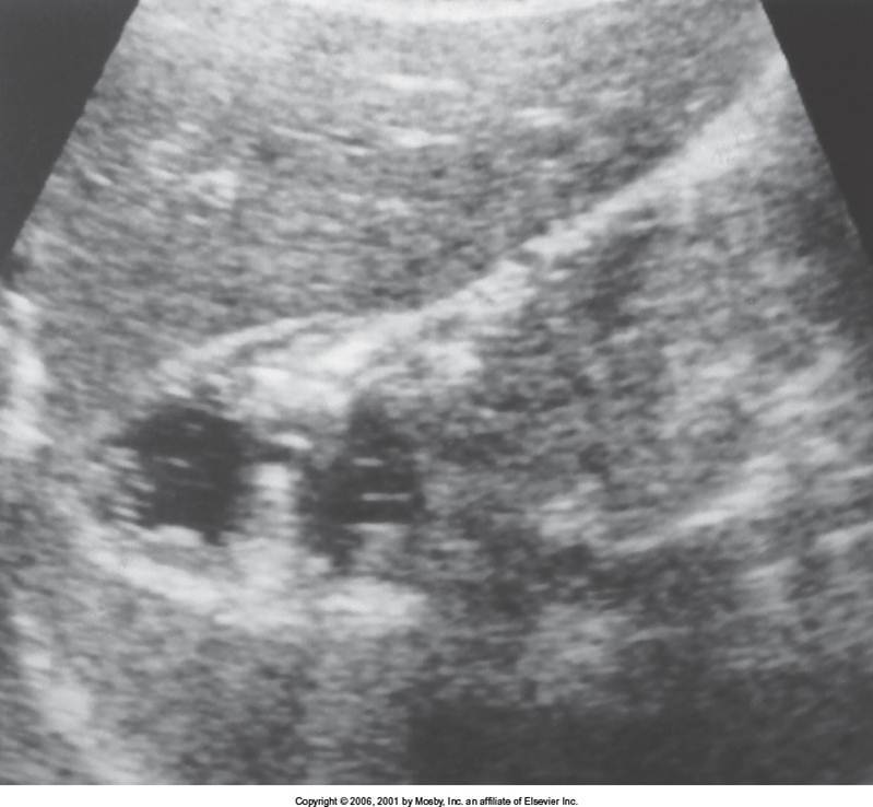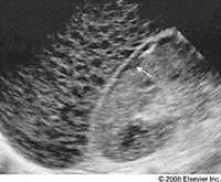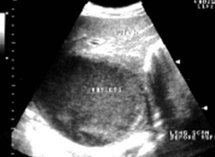 Not advanced: hyperechoic, enlargment, decreased vasculature