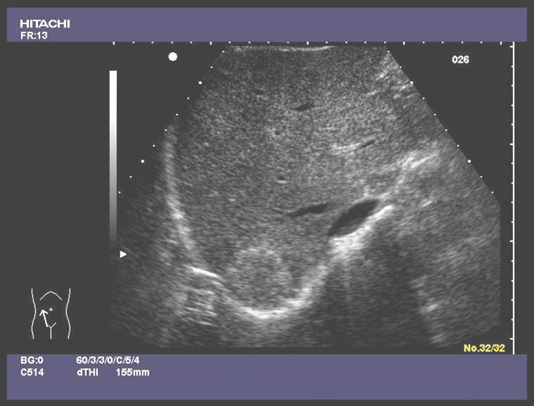 This disease process includes the entire liver and may or may not include sonographic findings
