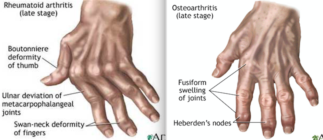 joint findings in osteoarthritis vs rheumatoid arthritis