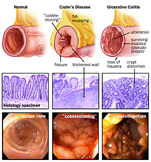 differentiate btw chron’s disease and ulcerative colitis.