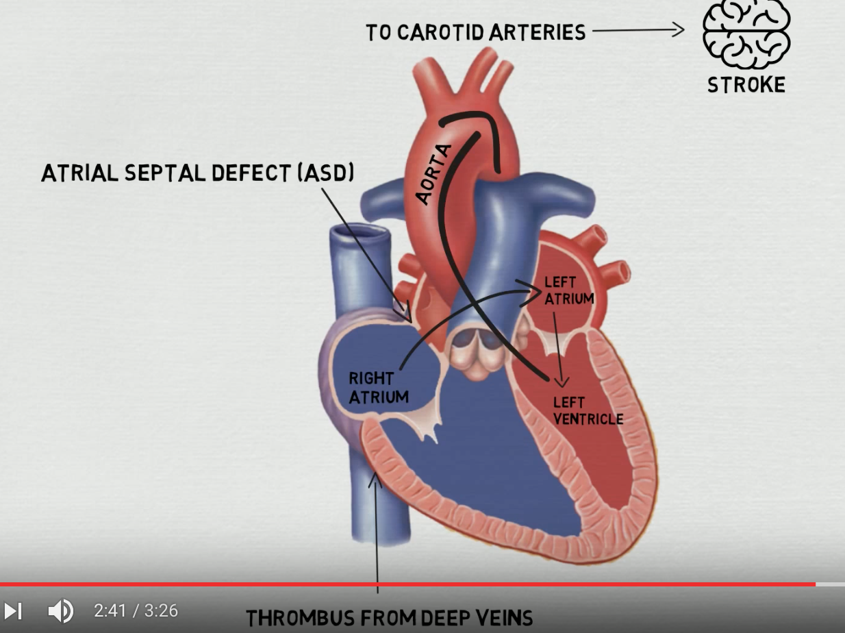 emboli can pass through an inter-atrial or inter-ventricular defect and gain access to the SYSTEMIC circulation