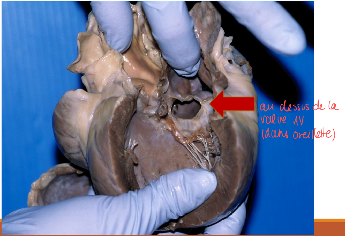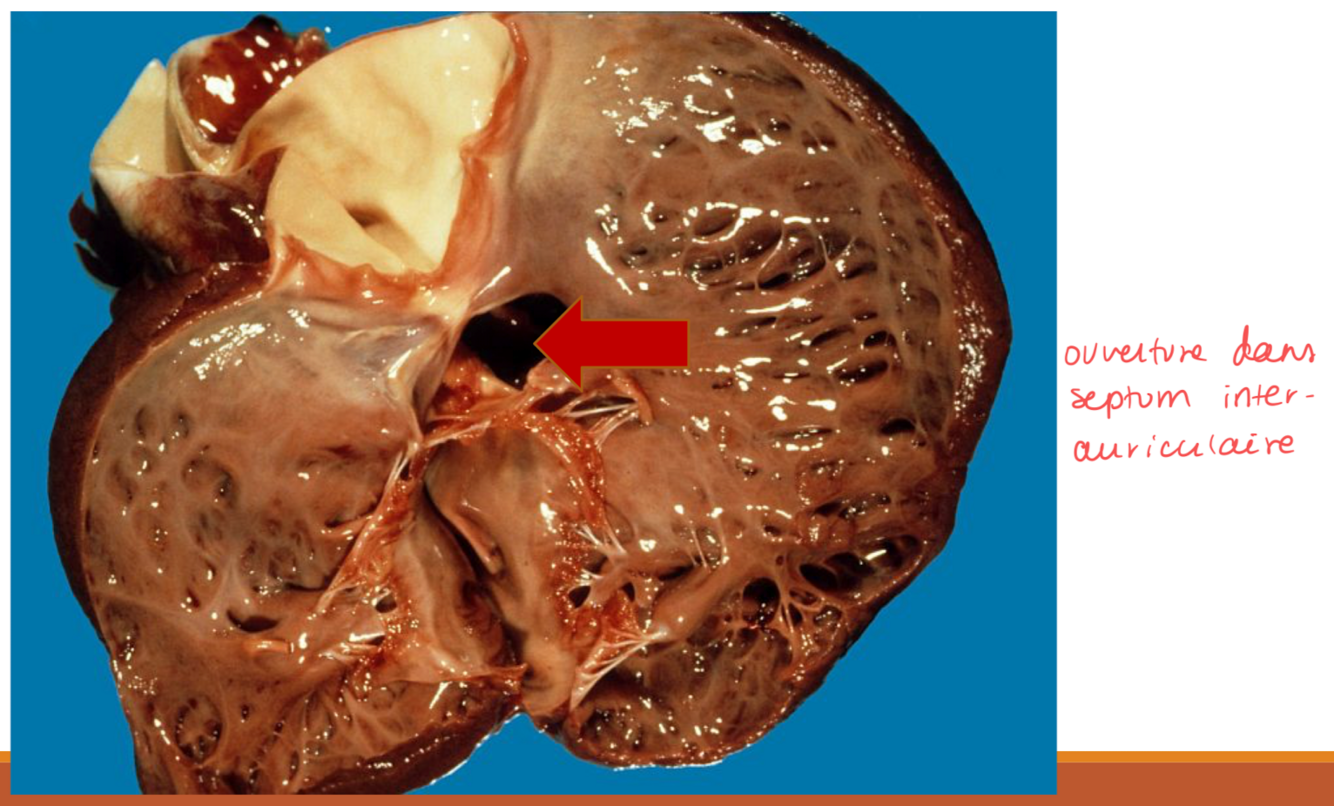 Le sang passe de l’oreillette gauche à l’oreillette droite (shunt de gauche à droite) - car la pression est plus forte à gauche !
