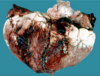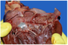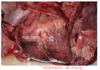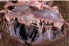 Ventricule droit: ouvert le long du sillon interventriculaire paracoronal