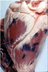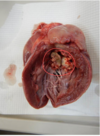 Chien: on sépare le coeur en 3 portions et on pèse le ventricule gauche + septum ensemble et ensuite le ventricule droit séparément