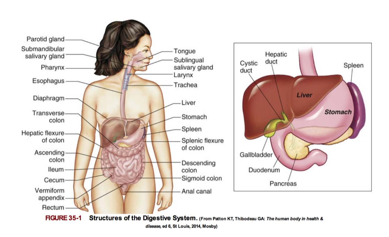 1) food breakdown starts in the mouth with chewing and continues in the stomach where it’s churned and mixed with acid, mucus, enzymes and other secretions