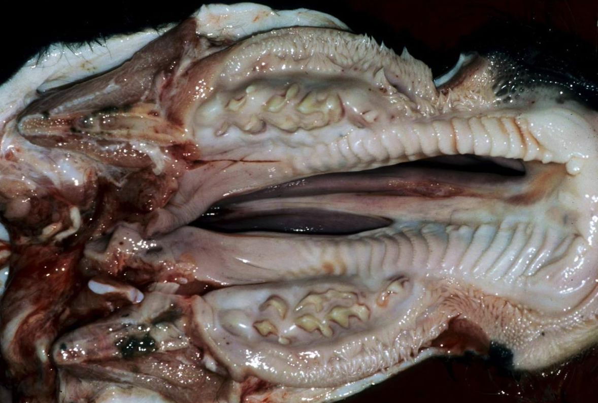 d) faux, lésions macro incluent colôn distendu, hypertrophie NL, hémorragies multisystémiques, pétéchies