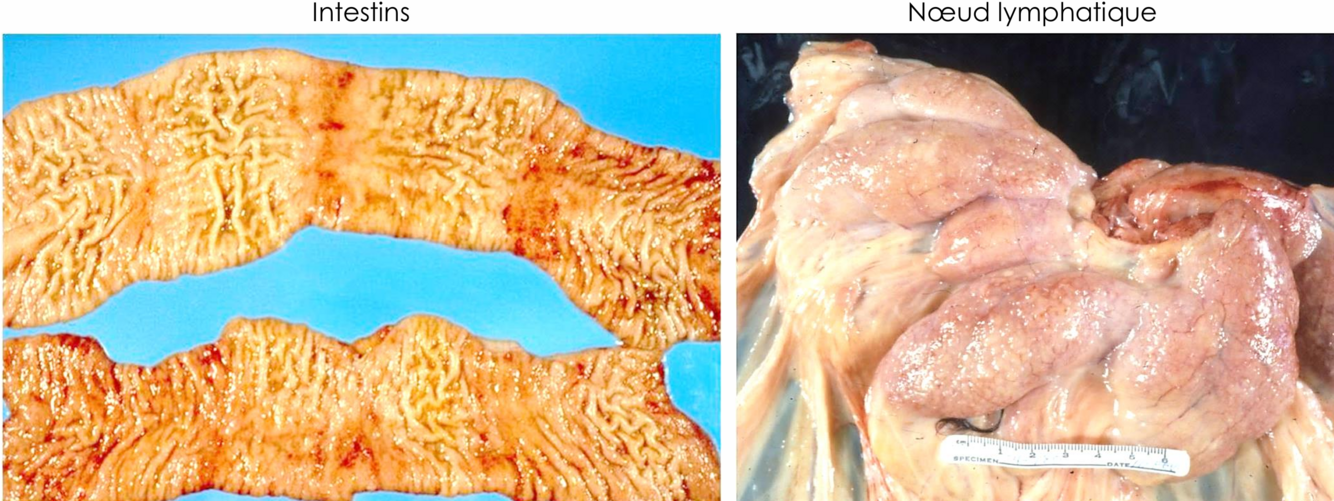 Quelle condition est associée à une perte de poids progressive accompagnée d’une hypoprotéinémie, et une infiltration histiocytaire (macrophages) de la paroi intestinale ?