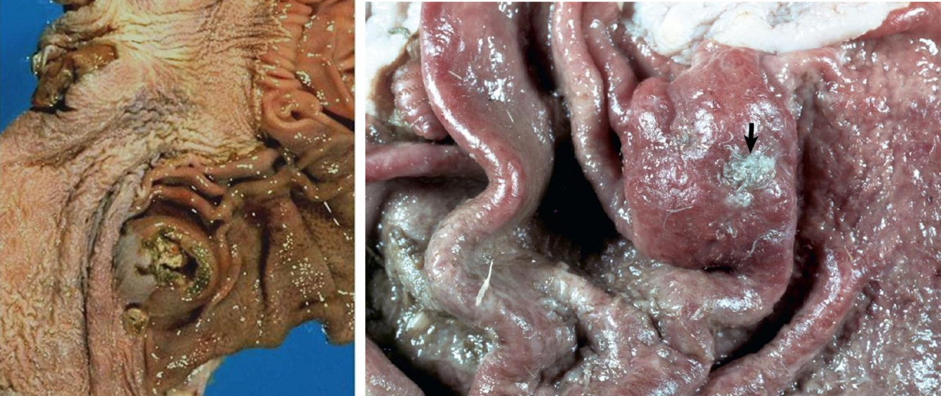 indice: érosion/ulcère au site d’attachement à la protion non-glandulaire de l’estomac