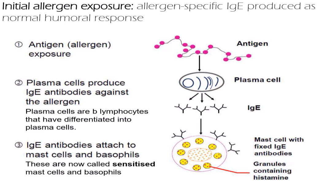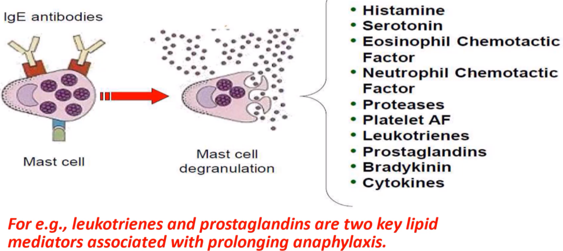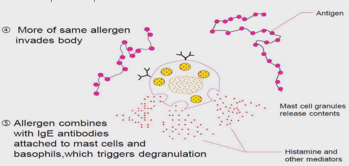 As the antibodies attach to the mast cell they release a bunch of different mediators which have a inflammatory response